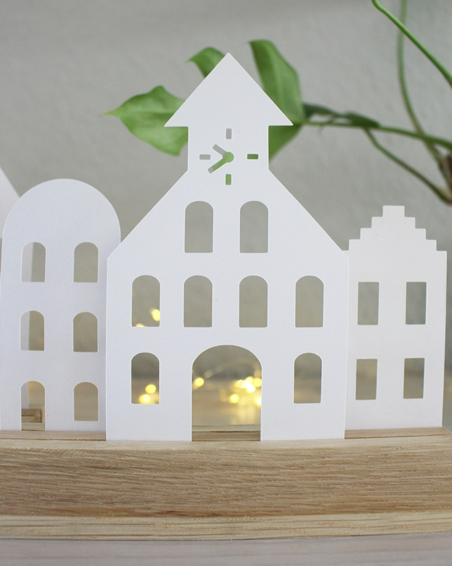 Die klaren Silhouetten der Häuser Plotterdatei lassen sich leicht plotten und eignen sich sowohl für Anfänger als auch für Fortgeschrittene. Durch die beiden Varianten mit und ohne Sockel kannst du Lichterhäuser basteln, eine Häuserreihe im Fenster dekorieren oder Windlichter bekleben.